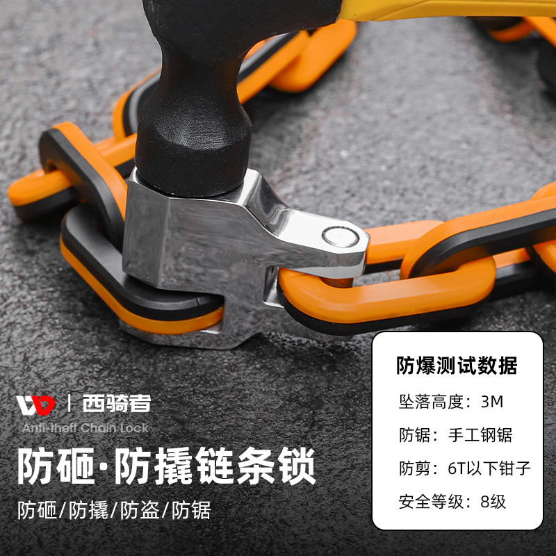 西骑者自行车链条锁电动车防盗锁便携合金锁山地单车钥匙锁配件
