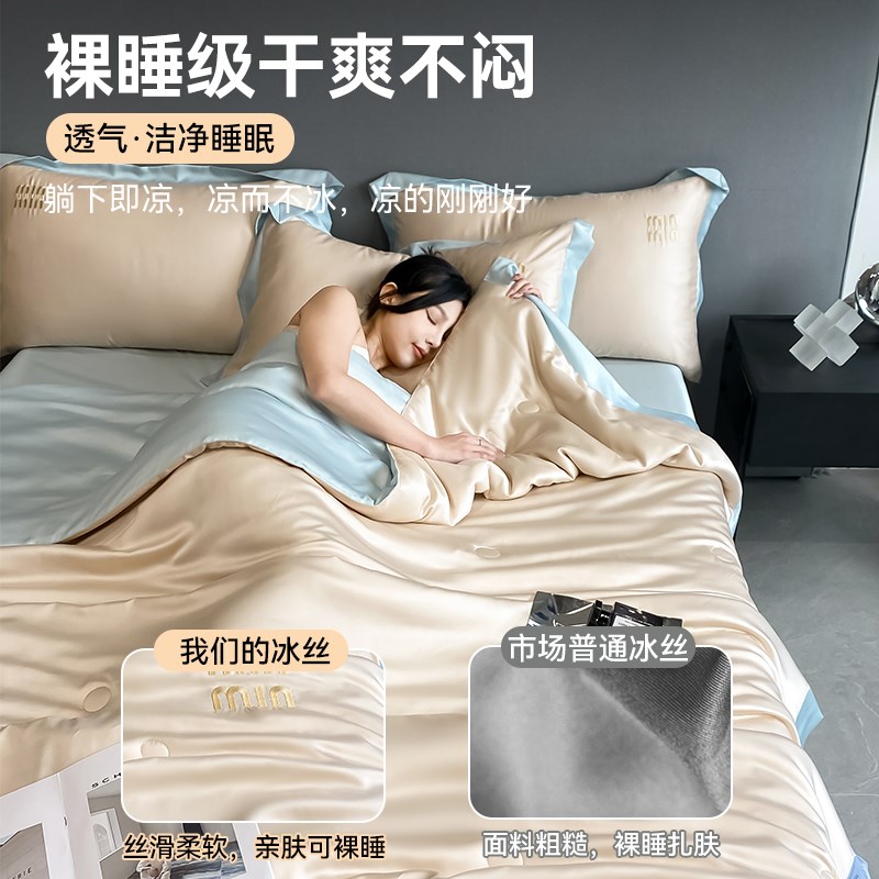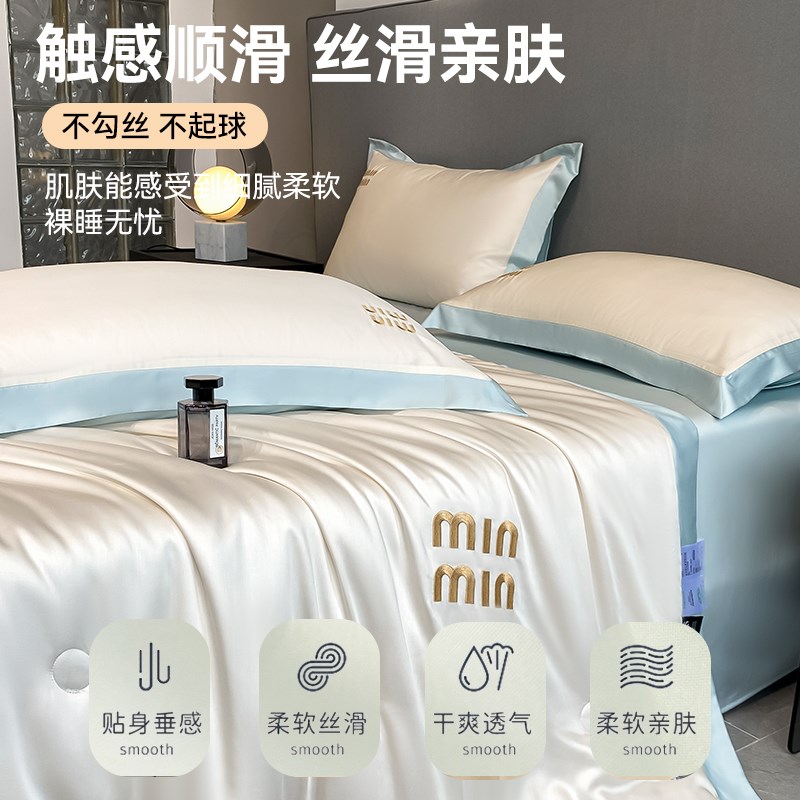 夏季夏凉c被床上四件套丝滑裸睡轻奢高级感冰丝空调被单枕套三件 - 春中世设计馆04