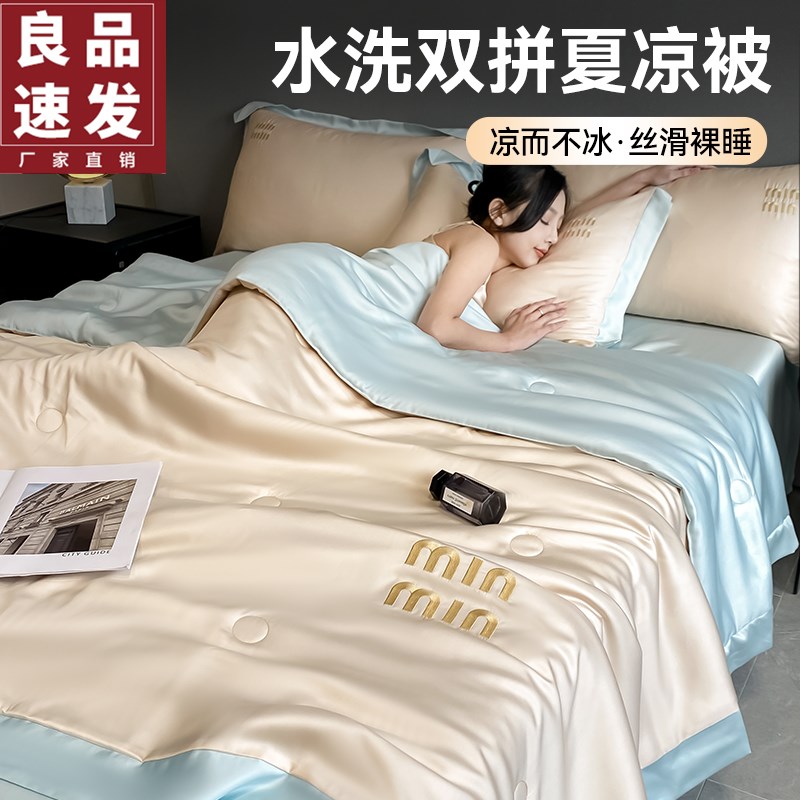 您的位置:他他商城  >   >  夏季夏凉c被床上四件套丝滑裸睡轻奢高级感冰丝空调被单枕套三件