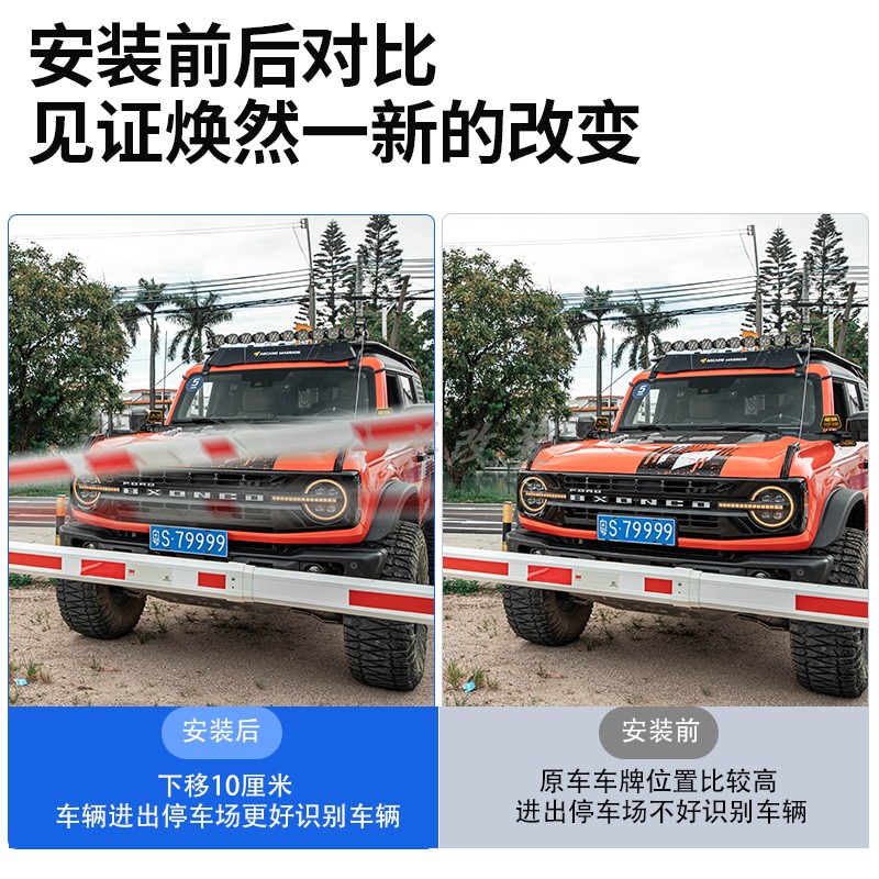 第壹社烈马Bronco原车前杠车牌下移固定支架铝合金低位牌照架框 - 公羊车品专营店