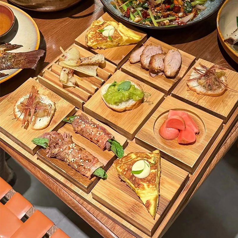分子料理创意甜品菜竹质餐具餐厅盘廊桥点心盘烤肉盘九宫格盘酒店