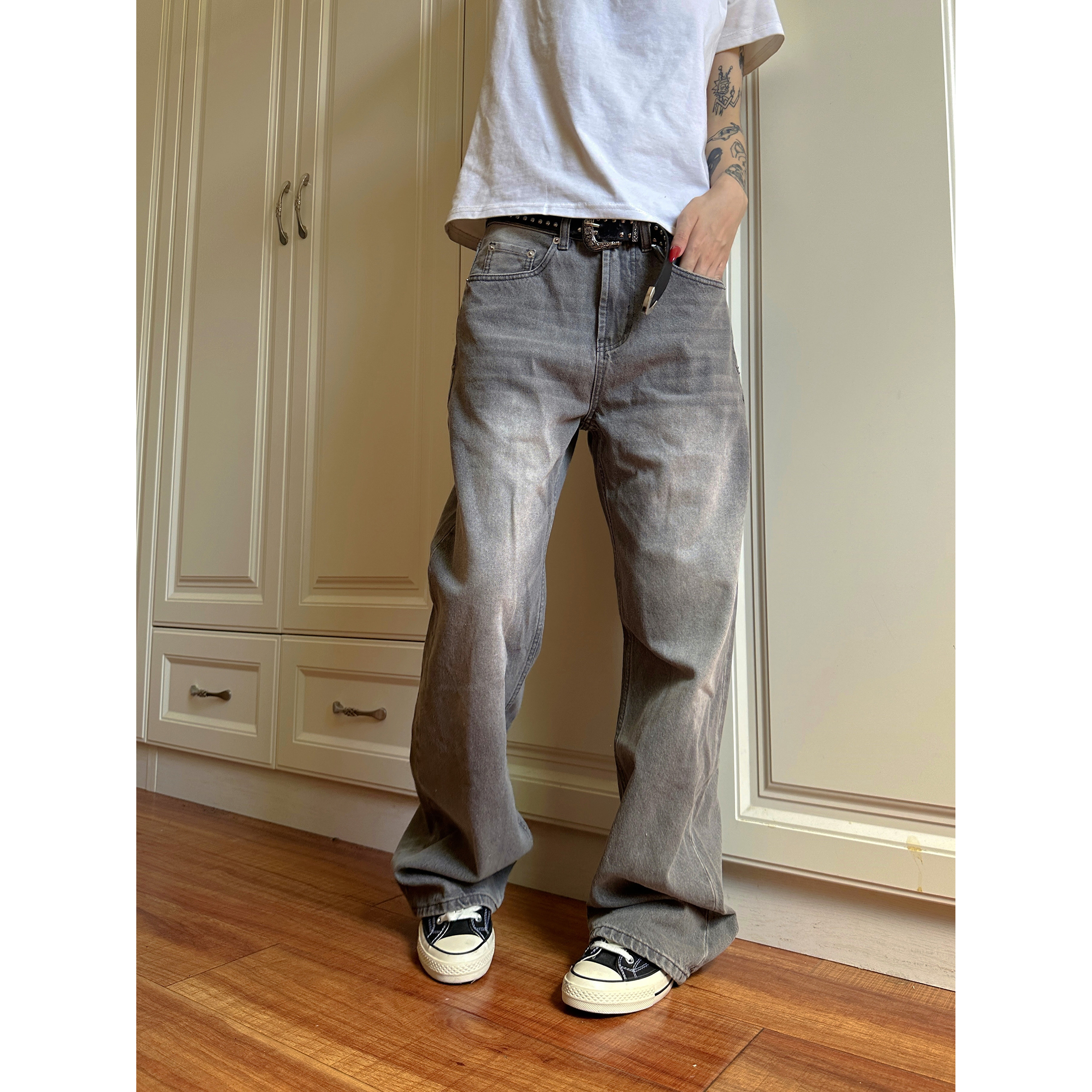您的位置:他他商城  >  男装  >  F383 2024美式复古烟灰色牛仔裤男女宽松直筒水洗设计vintage裤子