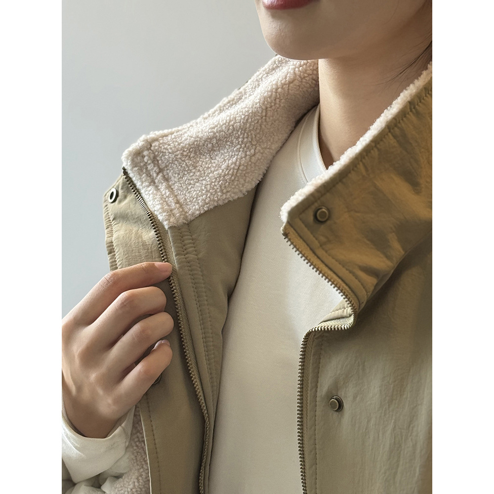 言双 羊羔毛工装派克服女 秋冬设计感内里保暖百搭立领外套 - YANSOO言双服饰