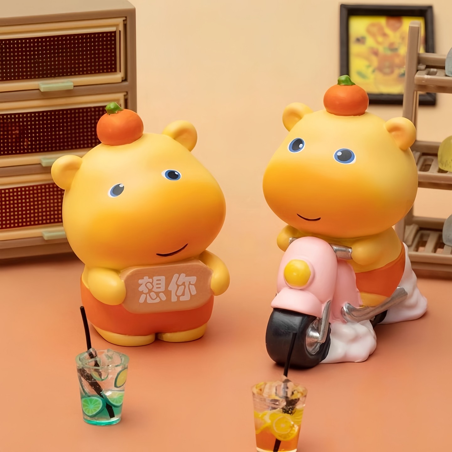 正版塑料水豚咕嘟嘟盲盒表情公仔卡通手办车载摆件装饰