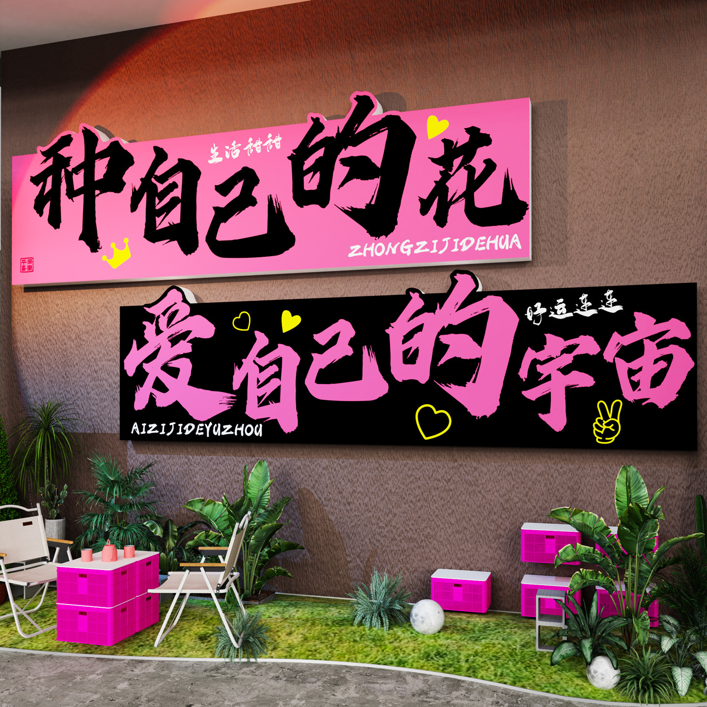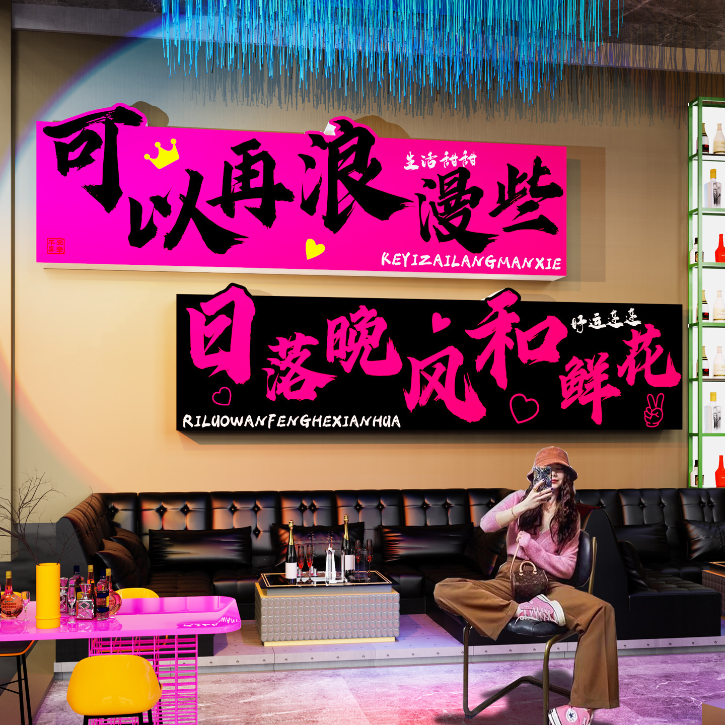 网红打卡背景墙贴纸拍照区布置户外造景烧烤餐饮店铺酒吧氛围装饰 - 罗兰雅旗舰店