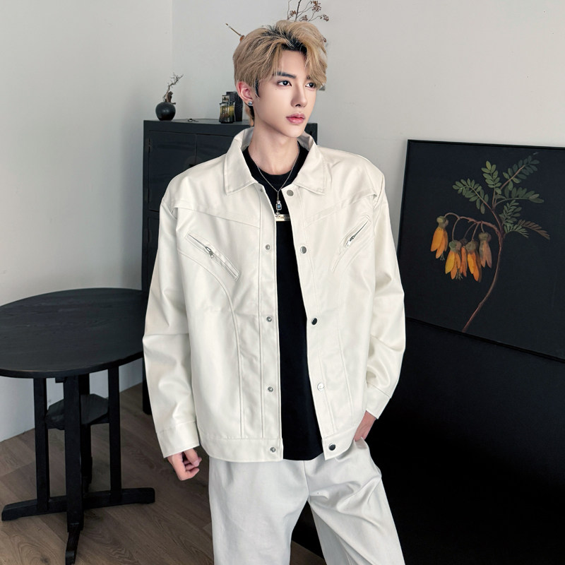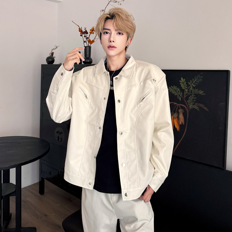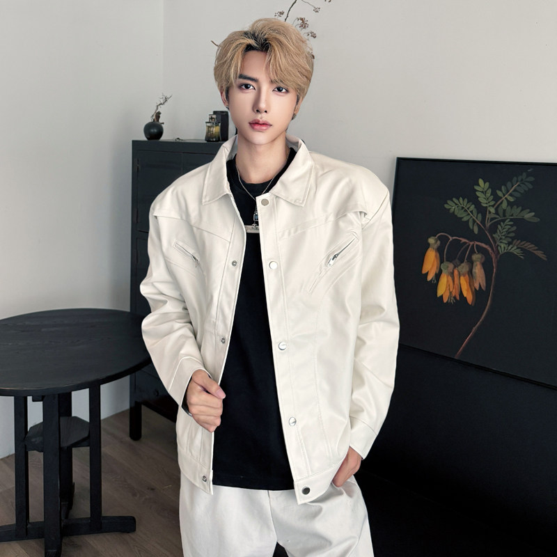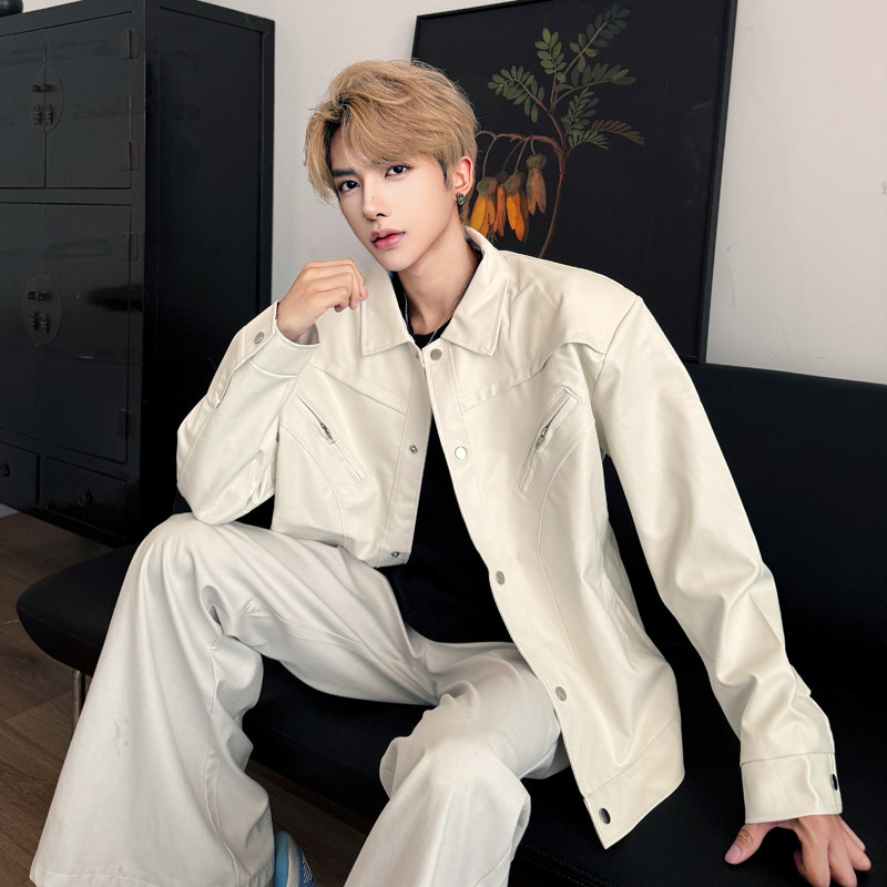 秋季白色cleanfit飞行员机车夹克男模高级感垫肩短款气质穿搭外套 - 我爱文艺美型男