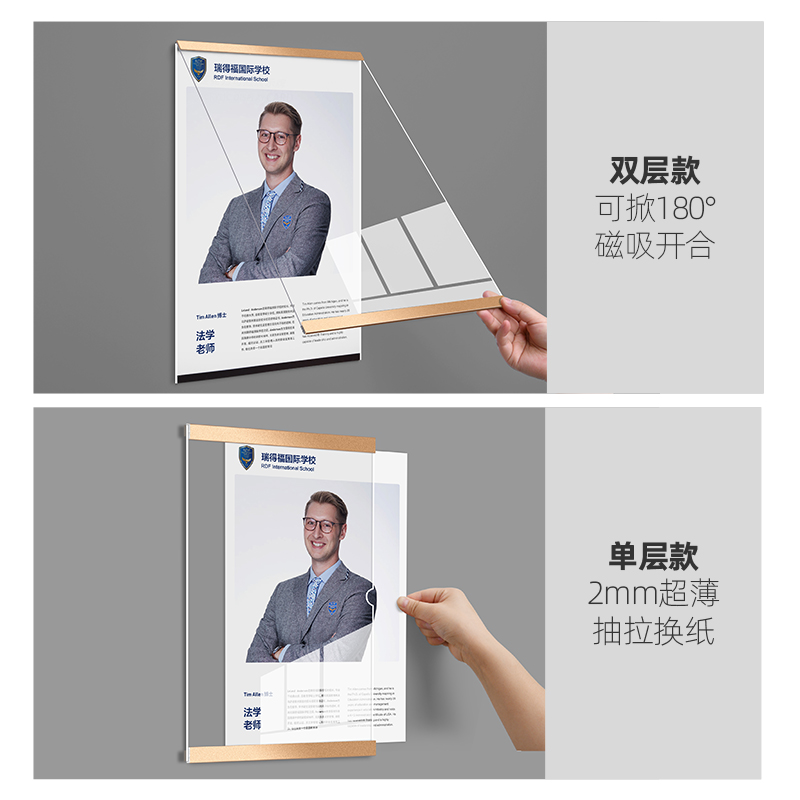 免打孔教师简介亚克力相框挂墙专家教练形象介绍墙员工风采展示墙