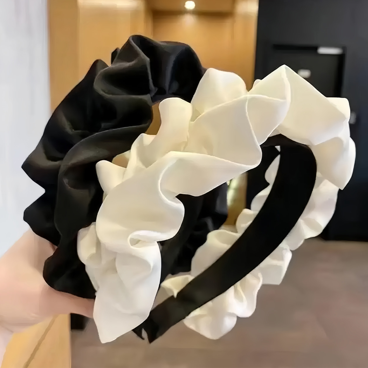 布艺发饰高颅顶褶皱木耳边时尚宽边显脸小发箍小头箍简约无痕蓬松
