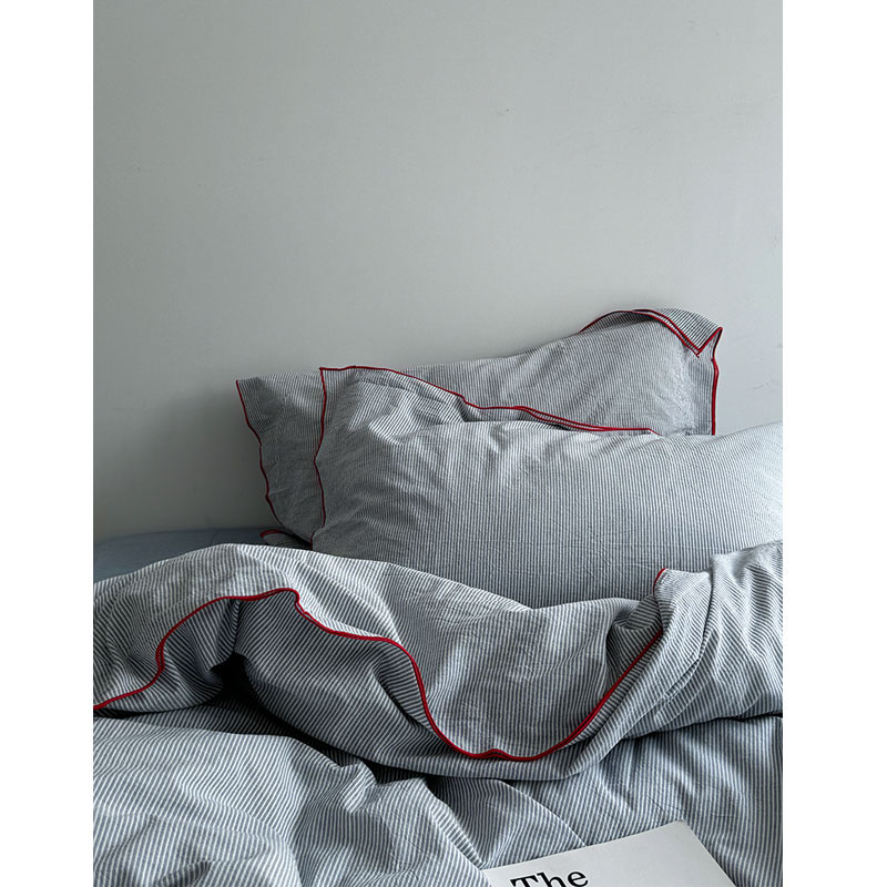 罗马画报/effortles小法式密拷边水洗棉条纹床单四件套床笠三件套