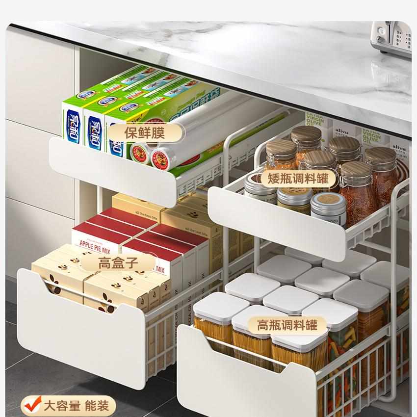 厨房橱柜拉篮下水槽置物架多功能家用碗碟调料收纳抽拉式分层架子 - 先达家居生活