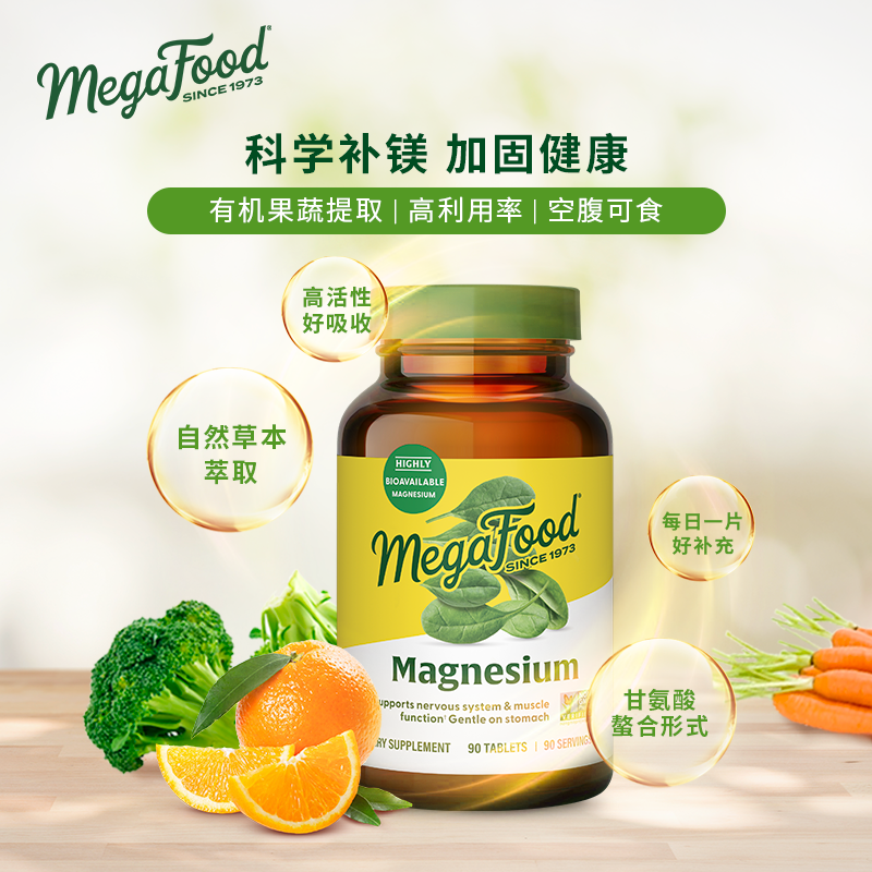 MegaFood甘氨酸镁补充剂成人睡眠质量肌肉抽筋神经骨骼健康90片 - MegaFood海外旗舰店