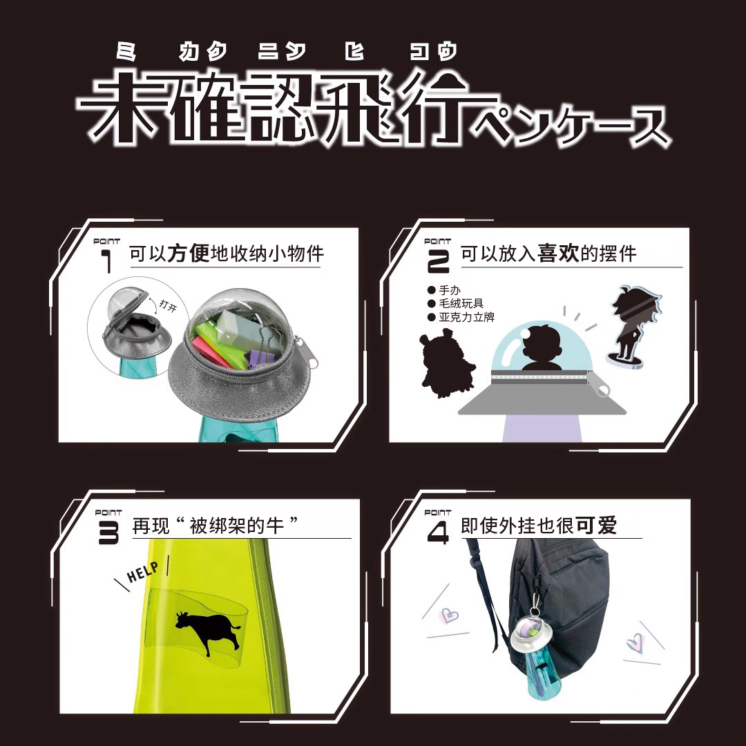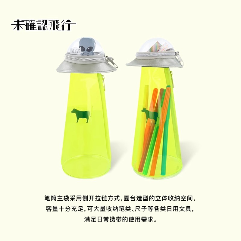 日本sunstar太阳星UFO飞碟笔筒立式笔袋纯色透明PVC双袋结构便携 - 差生文具盒