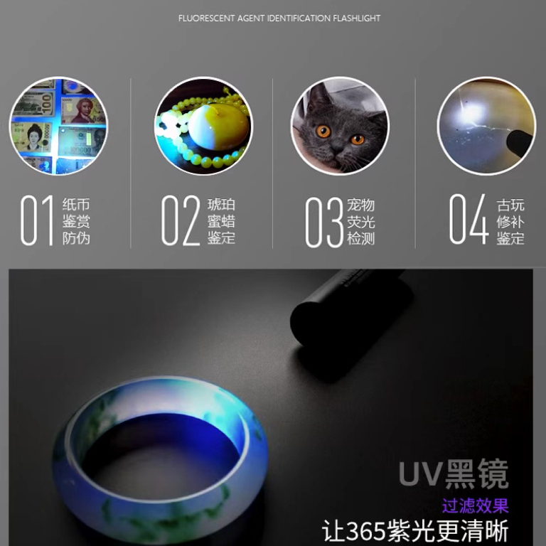 您的位置:他他商城  >  文体  >  紫光灯鉴定专用紫外线手电筒365nm鉴别翡翠玉石专用验钞荧光灯笔