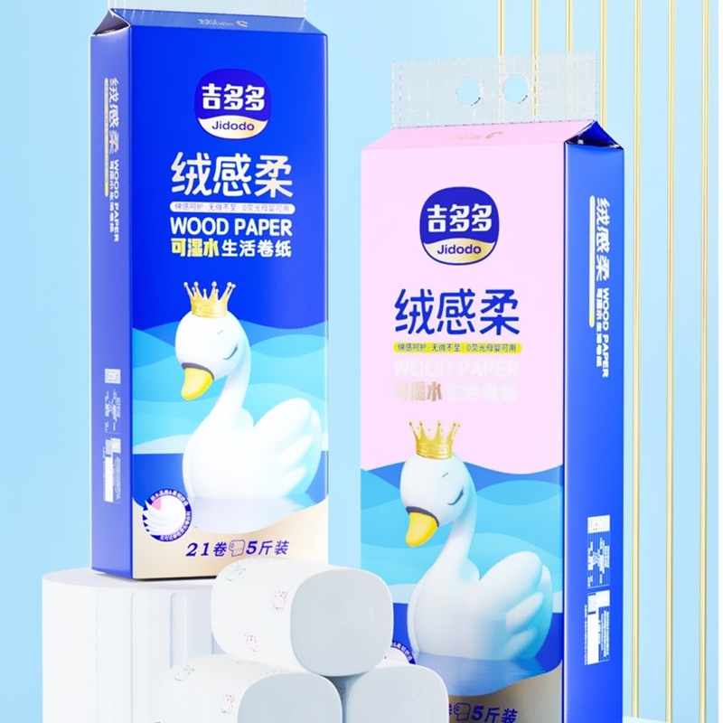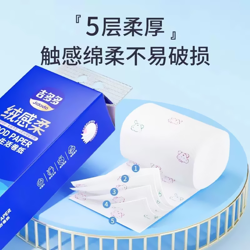 吉多多绒感柔卷纸可湿水原生木浆5斤印花大号五层加厚亲肤卫生纸 - 伊雪纸品优选