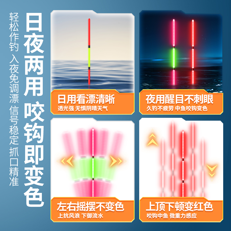 大物芦苇夜光鱼漂硬尾加粗醒目日夜两用远投超长行程变色鲢鳙翘嘴 - 无心法师渔具工厂店