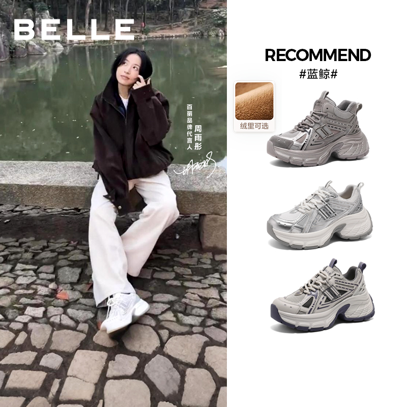 张凌赫同款百丽蓝鲸老爹鞋高帮加绒运动鞋新款厚底休闲鞋D2K1DC - 百丽官方旗舰店