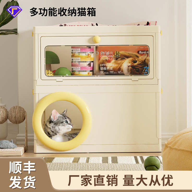 您的位置:他他商城  >   >  家用收纳箱一件起批客厅卧室多功能宠物用品收纳箱猫别墅带猫抓板