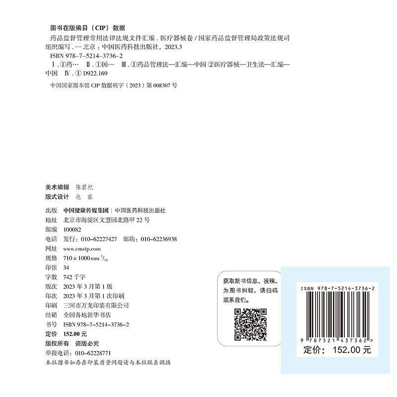 现货 药品监督管理常用法律法规文件汇编 医疗器械卷 国家药品监督管理局政策法规司组织编写中国医药科技出版社9787521437362 - 希尔麦图书专营店