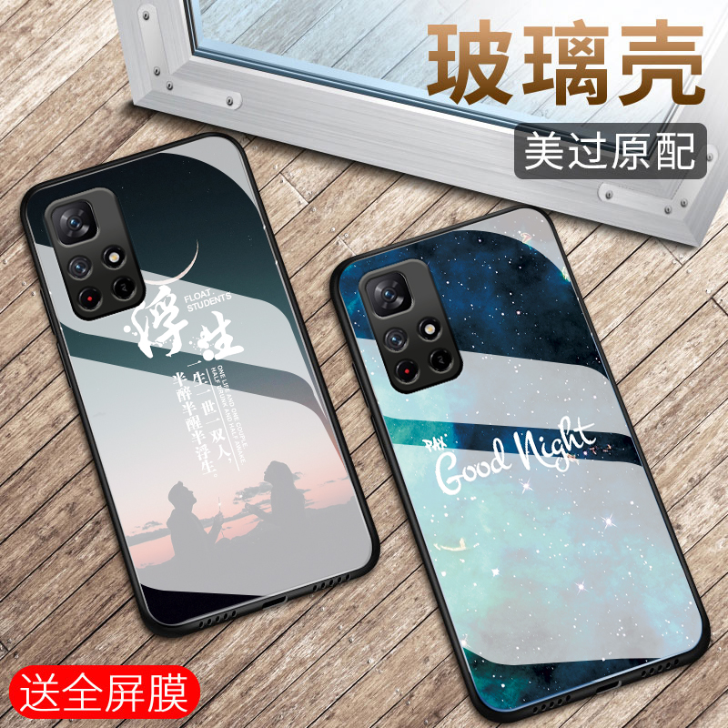 适用红米note11pro+手机壳新款小米RedemiNote11钢化玻璃镜面5G保护套11E全包11R防摔11Tpro男女11se硬壳街灯 - bigpig旗舰店