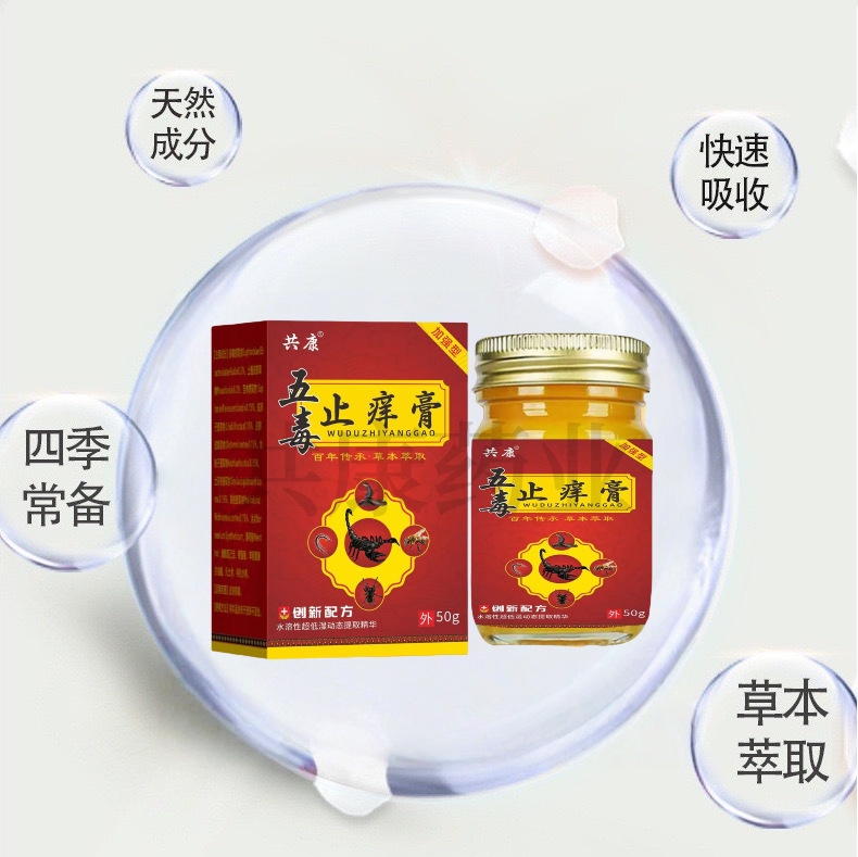 五毒止痒膏50g/盒草本止痒膏蚊虫叮咬干裂皮肤舒缓外用五毒 - 锦玖医疗器械专营店