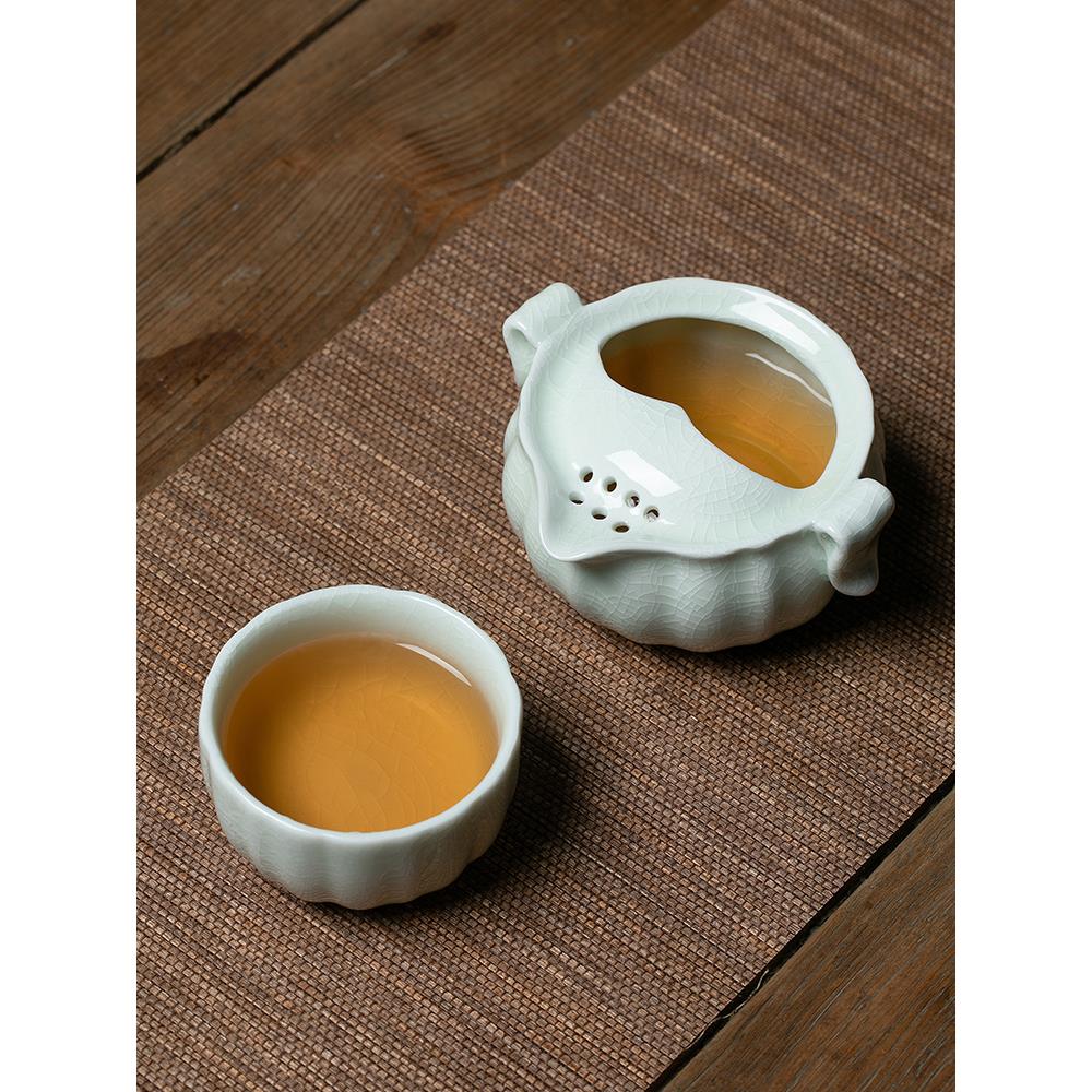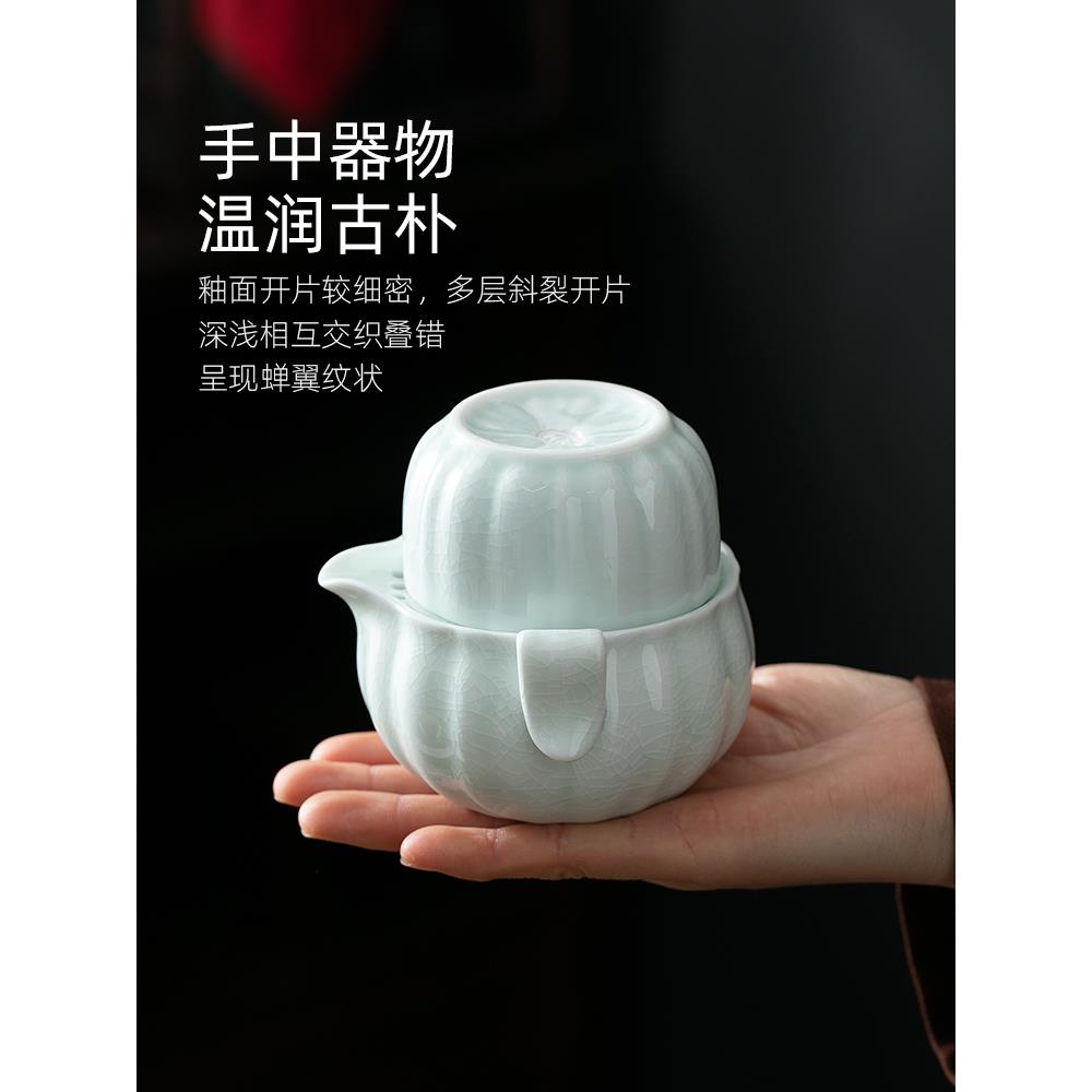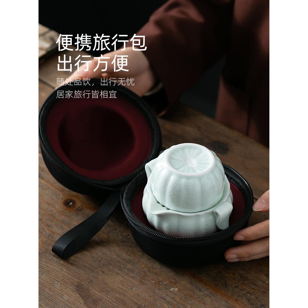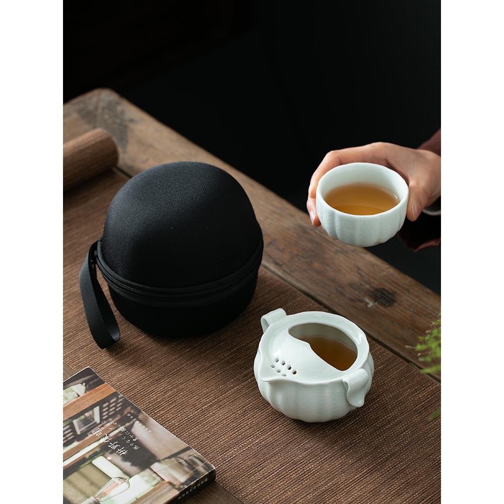 手提式旅行茶具汝窑快速杯一壶一杯简单单功夫手抓茶壶茶杯 - 昂立百货官营店