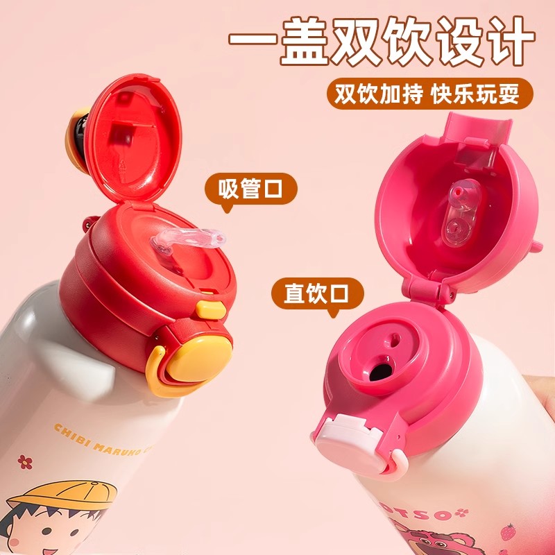 樱桃小丸子儿童保温杯学生上学专用水杯女孩吸管杯双饮杯水壶杯子 - goodfell格非尔旗舰店