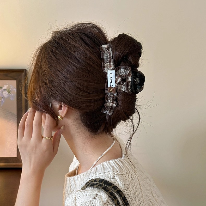 秋冬新款格纹可爱小熊发夹女后脑勺2025新款头饰甜美森系抓夹高端 - 璀璨艺阁