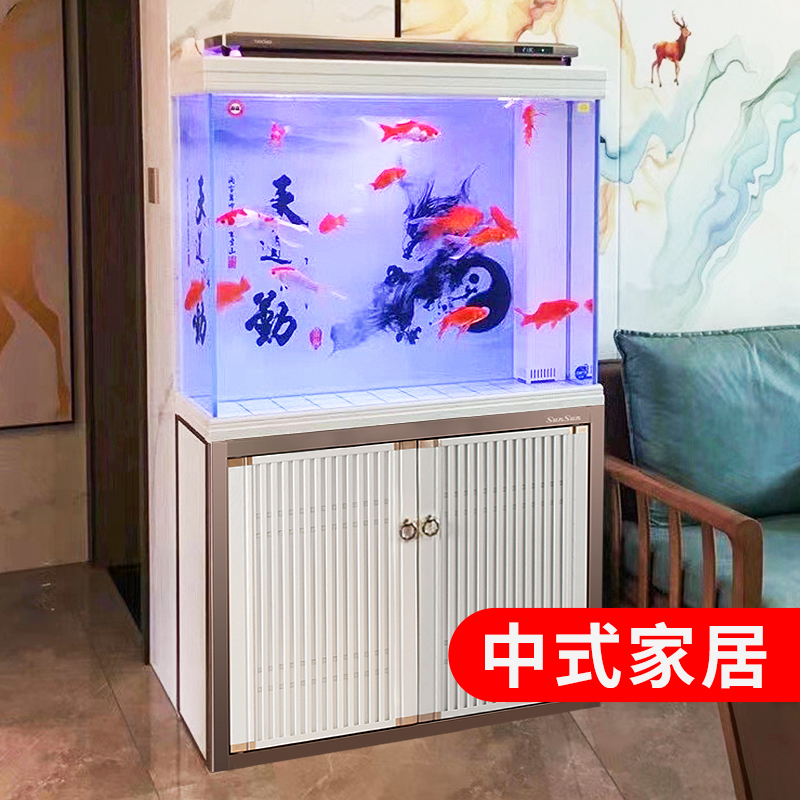 森森新款中式大型龙鱼缸超白玻璃水族箱客厅落地家用大缸隔断鱼缸 - sunsun森森旗舰店
