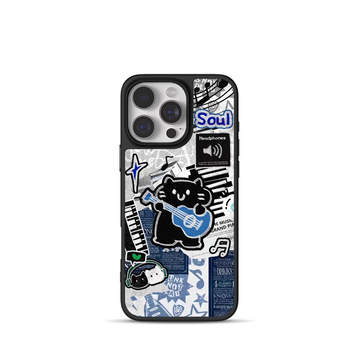 ins个性摇滚小黑猫黑边软壳适用苹果iPhone17promax手机壳16pro15小米14Pro保护套华为mate60P70防摔三星S23 - 油桃日记壳馆