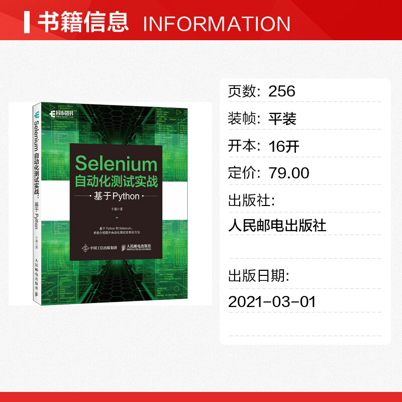 Selenium自动化测试实战 基于Python 于涌 著 程序设计(新)专业科技 新华书店正版图书籍 人民邮电出版社 - 新华在线图书专营店