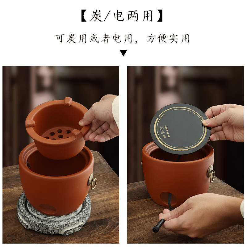 您的位置:他他商城  >   >  潮州红泥炭炉砂铫壶侧把烧水壶风炉仔碳电两用型复古功夫茶炉户外