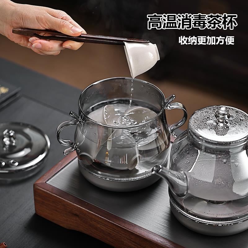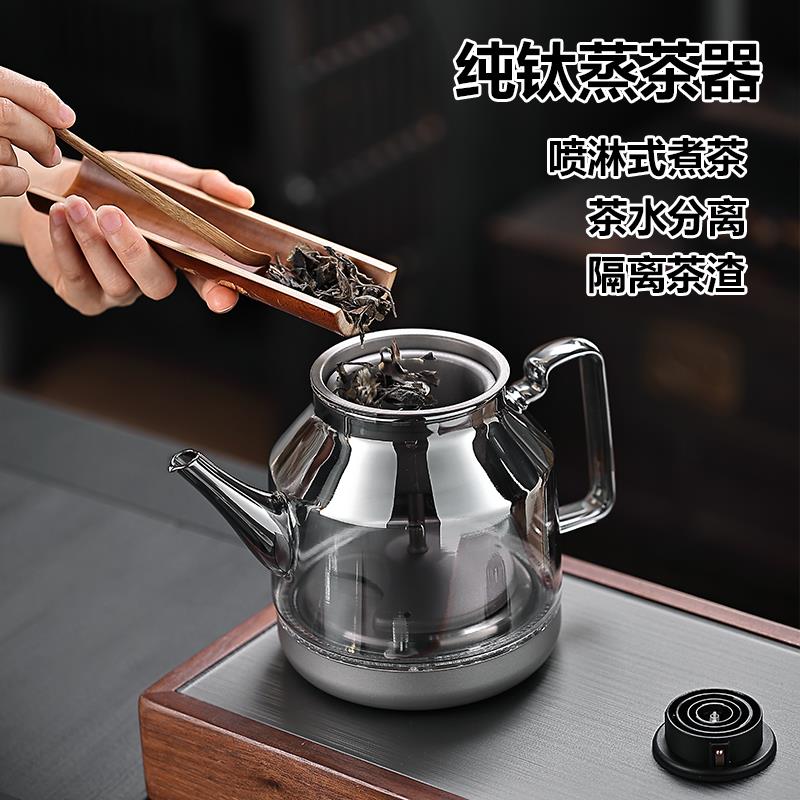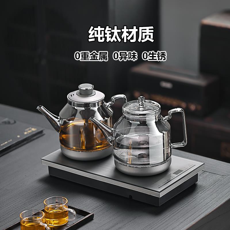 纯钛全自动底部双边上水烧水壶家用茶台茶桌嵌入式烟灰玻璃煮茶器 - 特变百货官营店