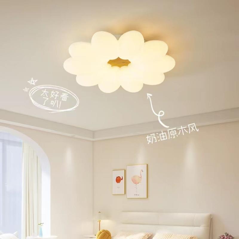 广东中山灯具温馨浪漫儿童房卧室灯原木奶油风花朵主卧房间吸顶灯 - 志沈维商贸城