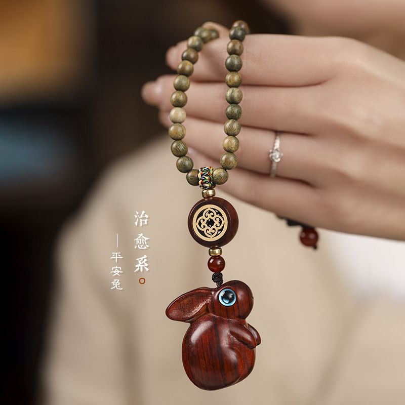 实用主义的时髦精 汽车挂件车内吊坠檀木生肖兔子兔车载挂饰 - 佛珠侠