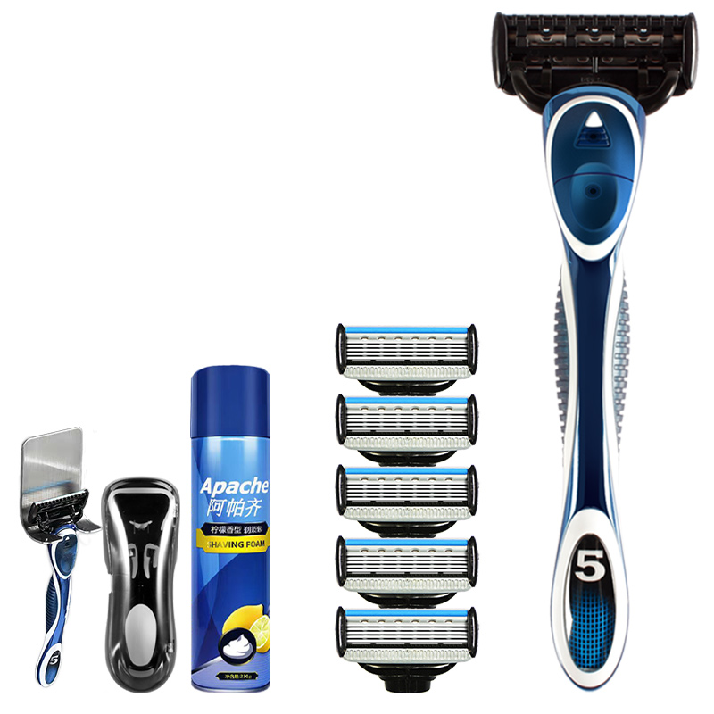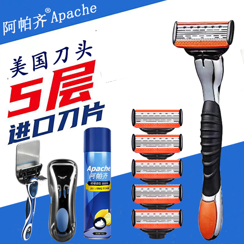 阿帕齐手动剃须刀5层进口刀片刮须刀头刀架套装老式男刮胡子刀 - 阿帕齐西叨专卖店