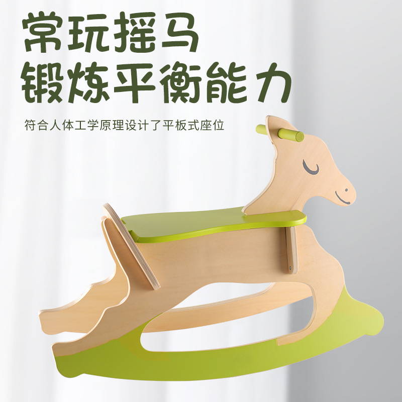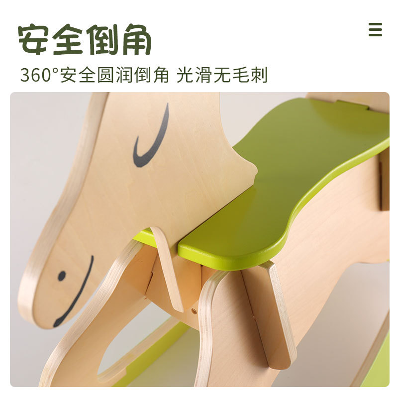 婴儿木制摇摇马安全儿童木质2-3-5-6岁摇椅早教训练云和木玩订制 - 九悦儿童玩具店