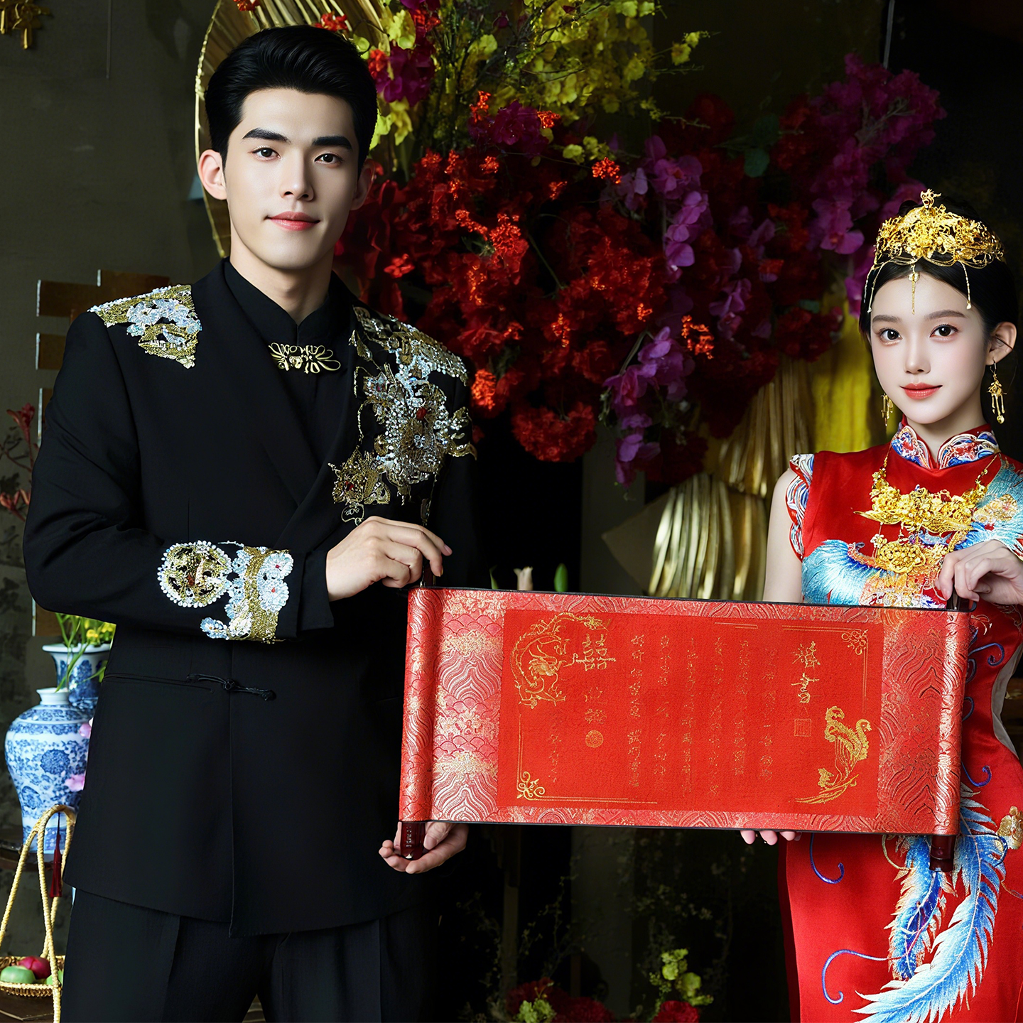欢喜橙/新中式国风新郎结婚中山装龙纹西服套装订婚重磅男士礼服 - 伊莎贝尔婚纱礼服店