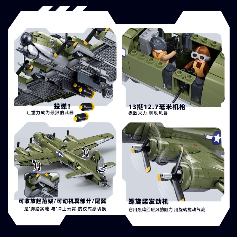 小鲁班B17轰炸机军事飞机模型积木儿童益智玩具男孩积木模型 - 二群服务小站