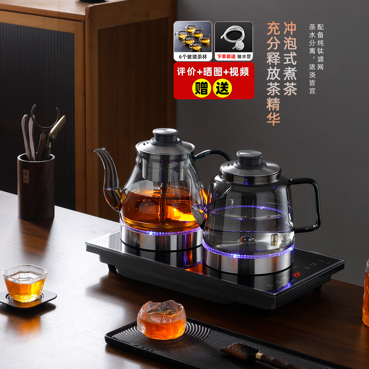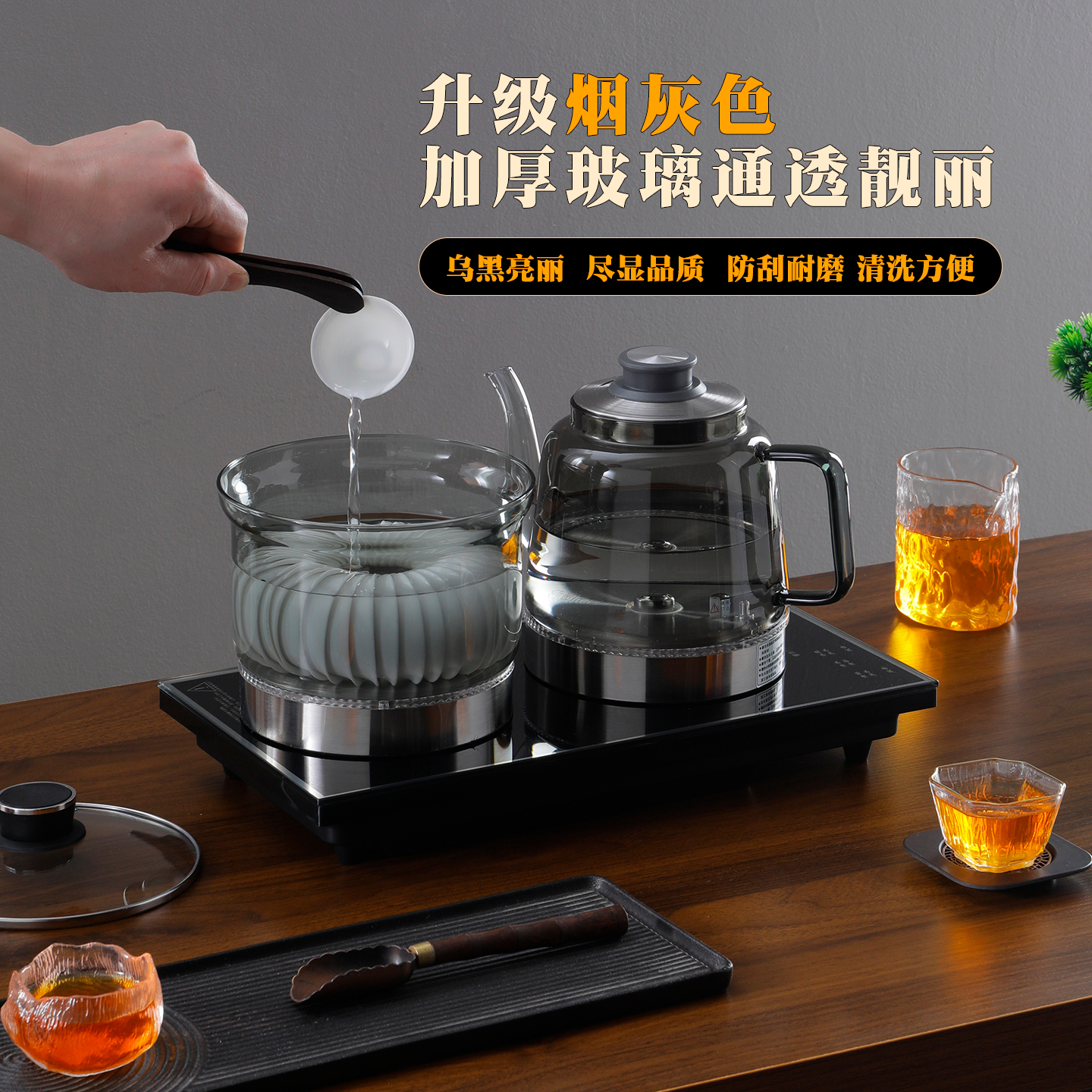 全自动底部双上水烟灰玻璃壶电热烧水泡茶台嵌两用一体电茶炉