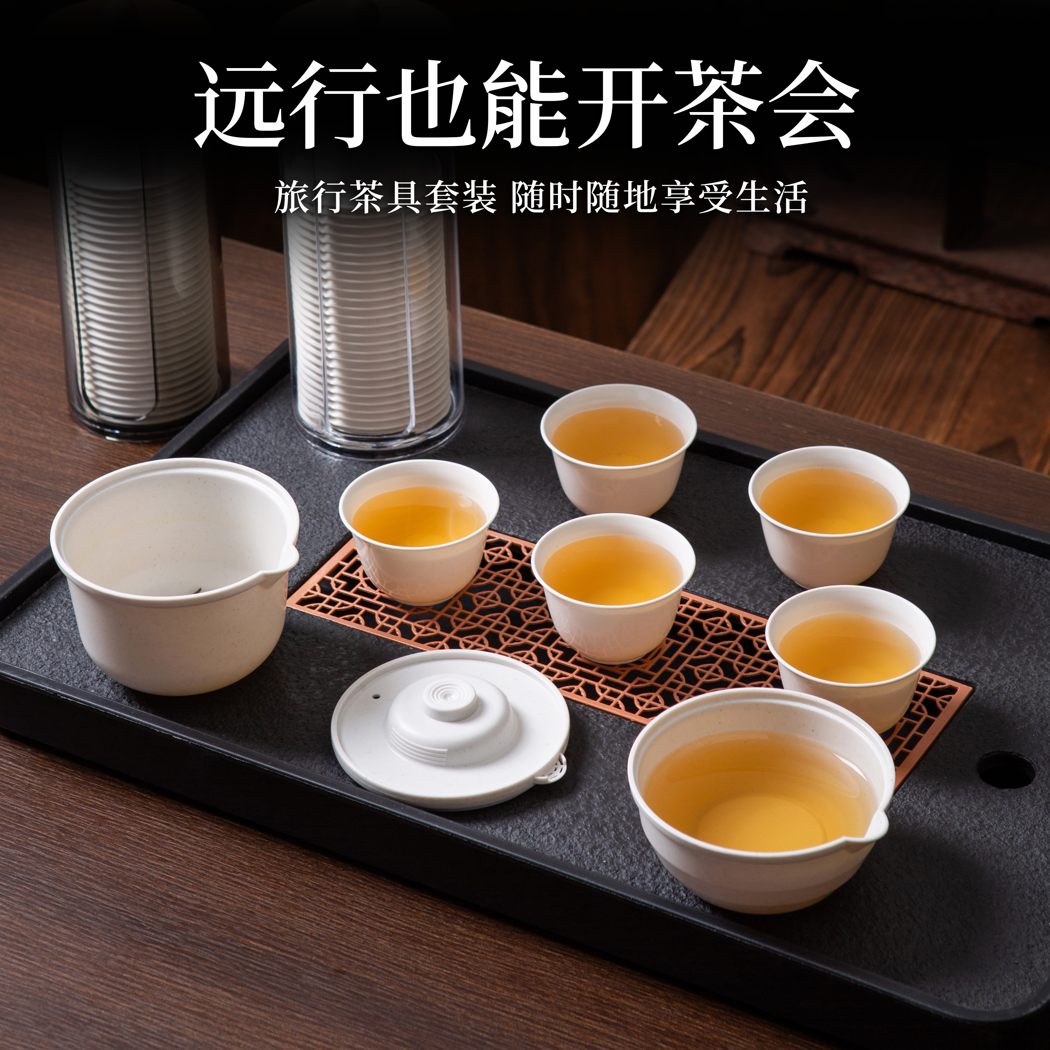 一次性稻壳功夫茶具套装旅行茶杯便携可降解快客杯户外喝茶泡茶杯