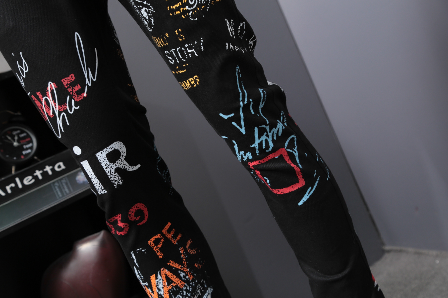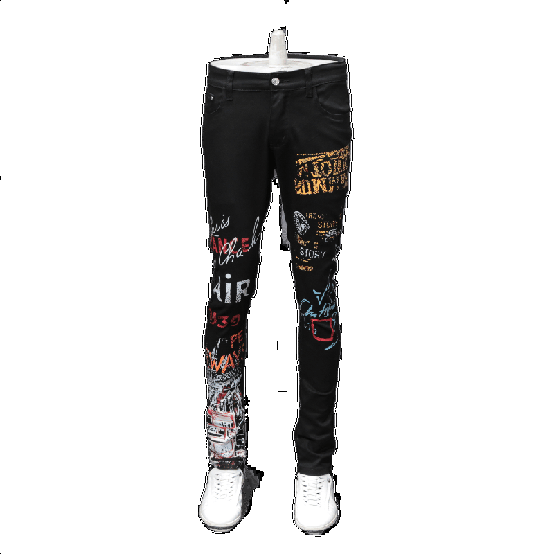 您的位置:他他商城  >  男装  >  夏秋黑色印花弹力休闲牛仔裤男潮牌个性欧美时尚直筒修身长花裤子