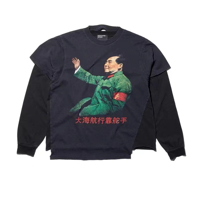 ERD自忧郁富二代借鉴大海航行靠舵手假两件拼接宽松水洗长袖双色