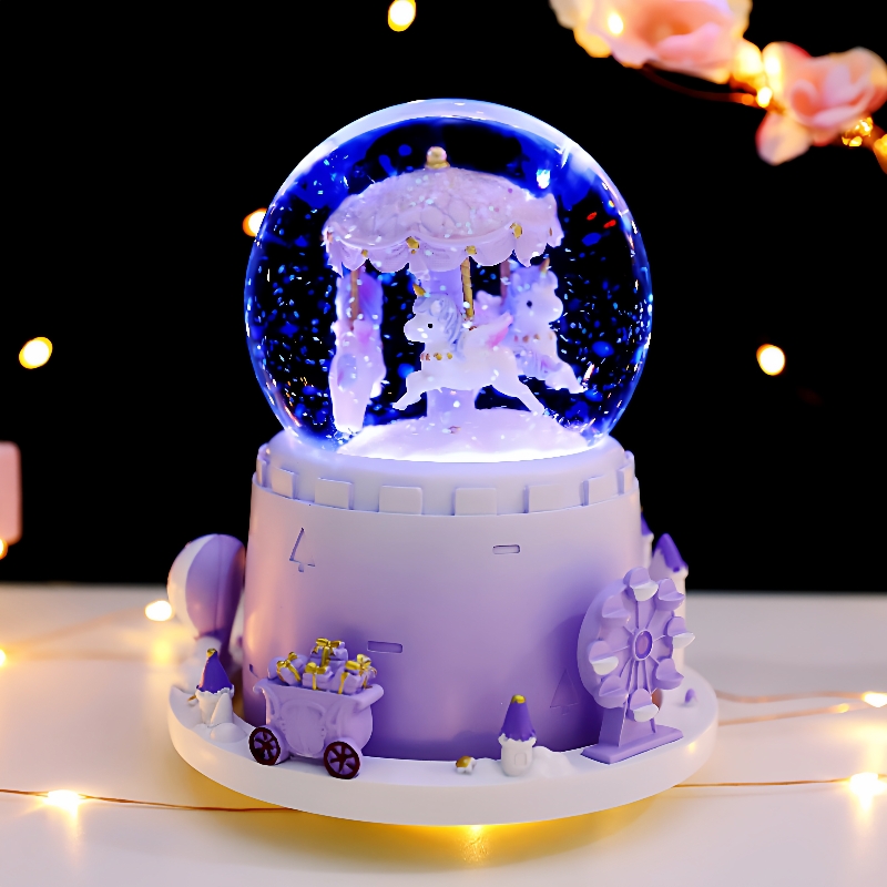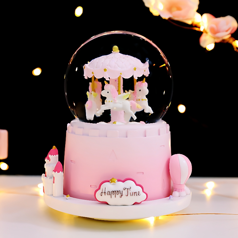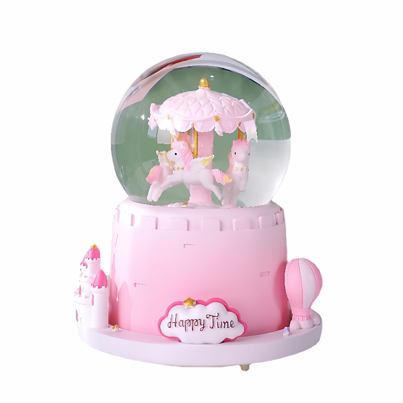 您的位置:他他商城  >   >  粉色旋转木马城堡特大号外旋转自动飘雪彩灯水晶球八音盒生日礼品