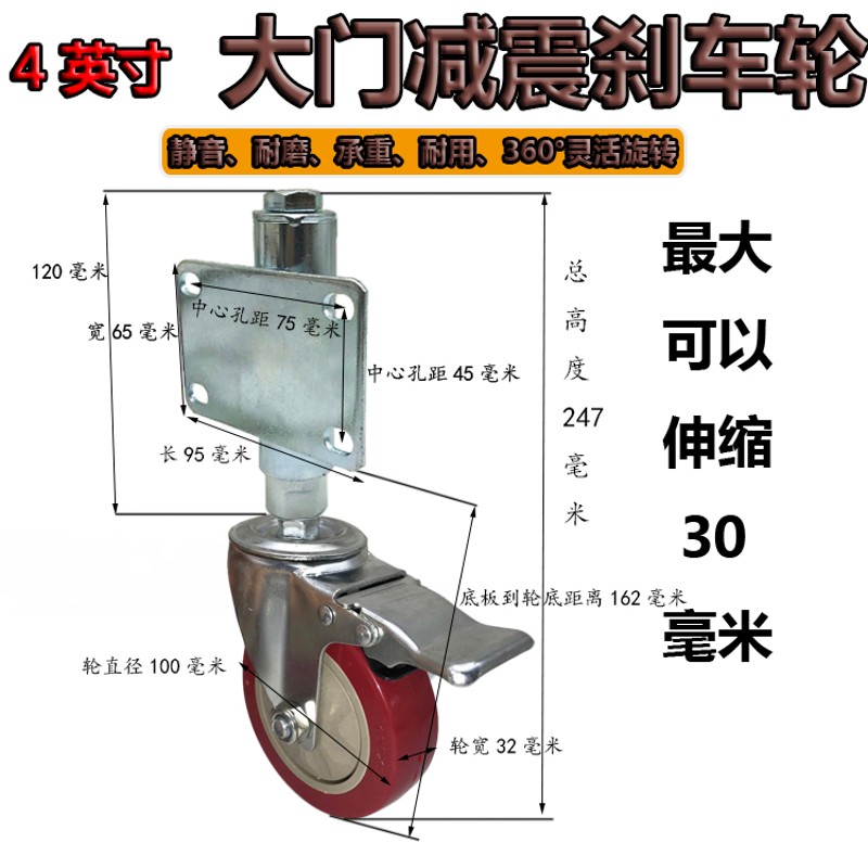 您的位置:他他商城  >  居家  >  包邮2/3/f4/5英寸弹簧万向脚轮大门减震刹车轮子承重铁门辅助轱辘