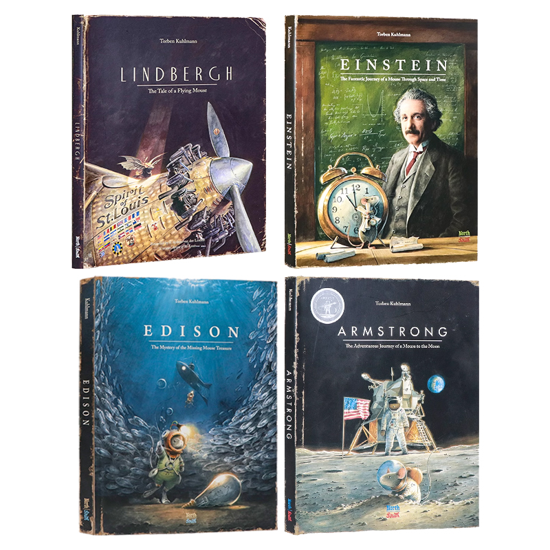 传奇小鼠冒险系列 英文原版绘本Armstrong/Edison/ Lindbergh/Einstein 获奖名家全彩插画版英语精装绘本 Torben Kuhlmann - 文萃图书专营店