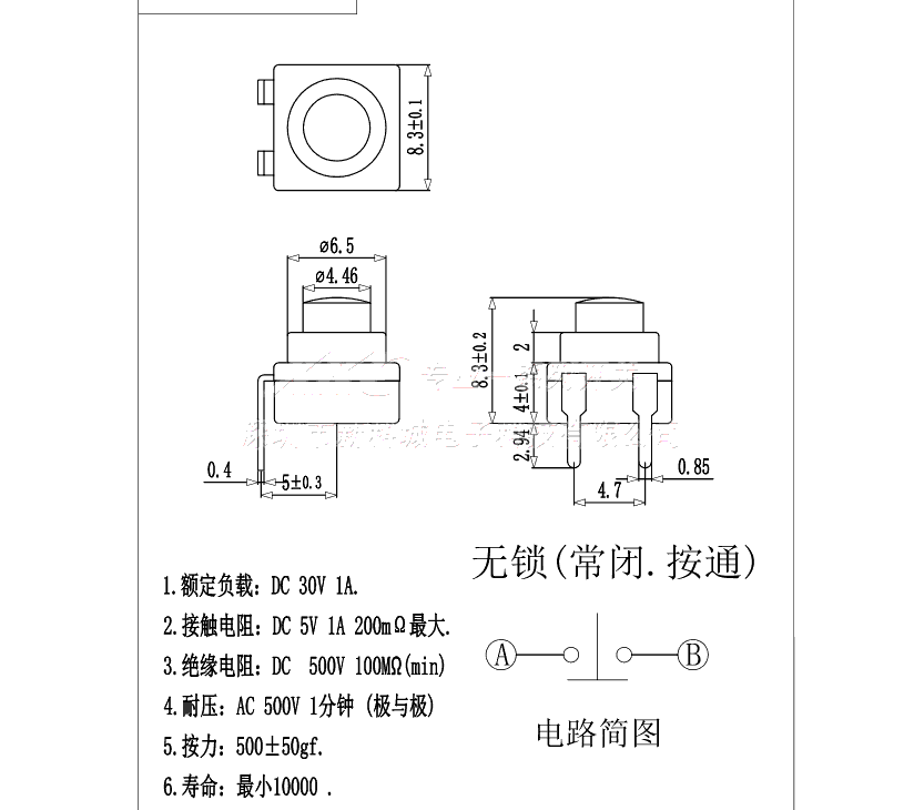 迷你小开关 按键按钮复位 无锁开关 8.3X8.3MM 高度8.3MM 直插2脚 - 新科城电子