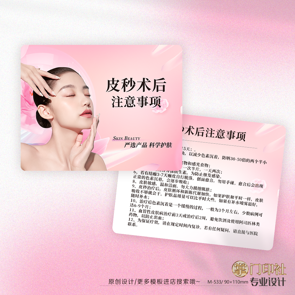 古方技术祛痣疣医美术后注意事项卡定制设计印刷美容事项卡 - 掌门印刷 千款模板