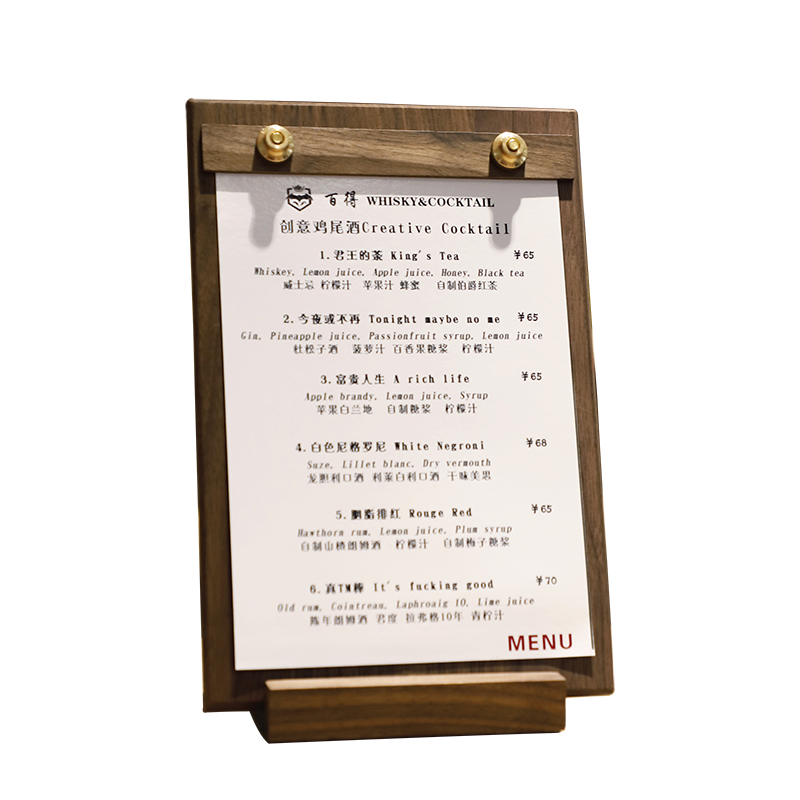 菜单夹胡桃木展示牌桌面咖啡店菜单板立式a4垫板餐Y厅木质账单夹 - 新风斋日用品的小店58