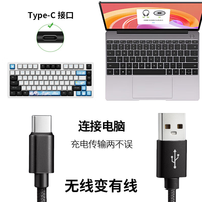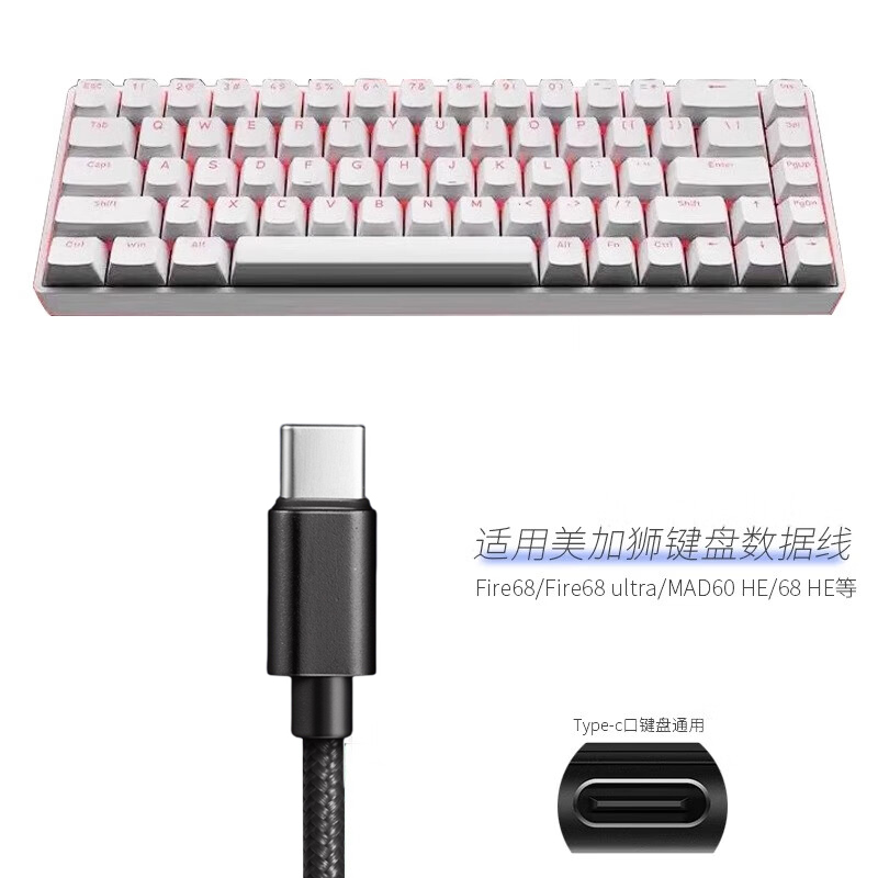 适用IYX艾岩MU68Pro Ultra电竞磁轴键盘连接USB电脑数据线机械键盘8K连接线USB转Type-c充电线2米 加长传输线