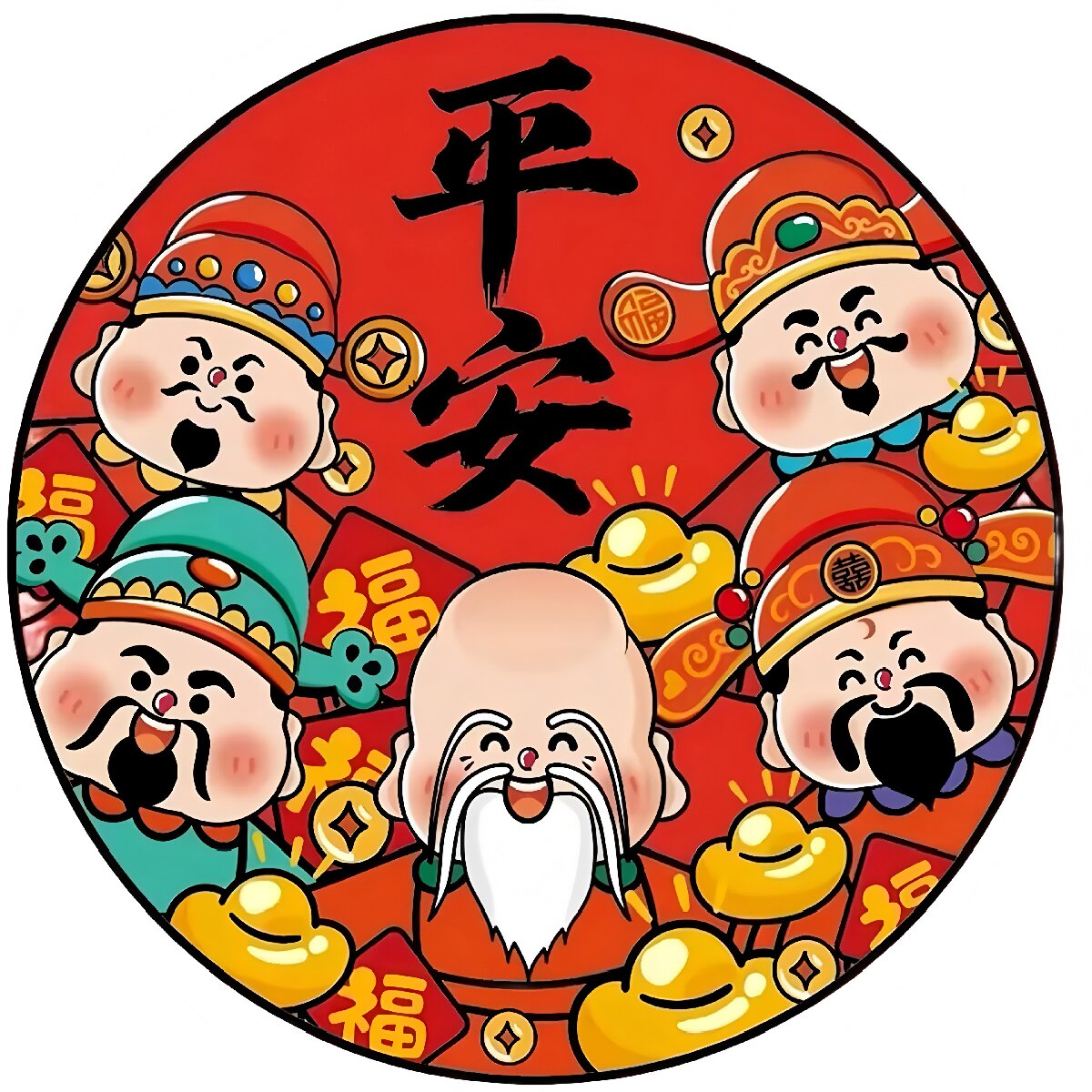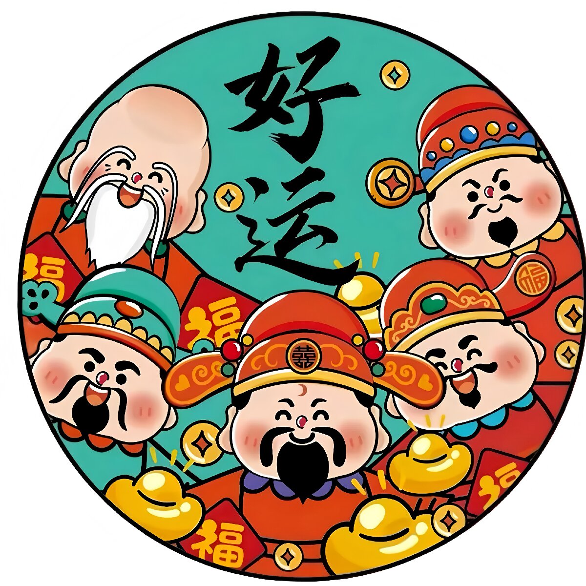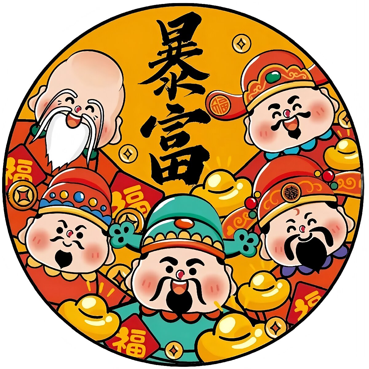 暴富好运平安发财门窗自粘贴画无痕装饰窗贴冰箱玻璃喜庆贴纸P398